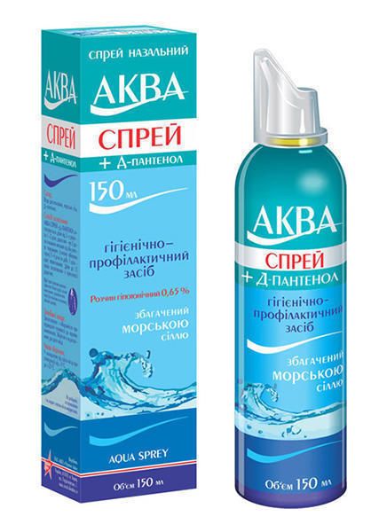 Гигиенически - профилактическая помощь в устранении ринитных проявлений различного происхождения. Промывание носовых пазух. Размягчение корочек в носовой полости. АКВА СПРЕЙ + Д-Пантенол 0,65% - назальный спрей для гигиенически - профилактического ухода за носовой (ротовой) полостью.