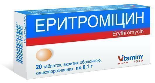 Таблетки, покрытые оболочкой, кишечнорастворимые. 1 таблетка содержит 0,1 г эритромицина.