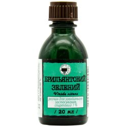 - бриллиантовый зеленый. Быстро действует на стафилококки.