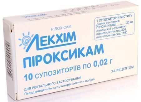 1 суппозиторий содержит пироксикама 20 мг (0,02 г);