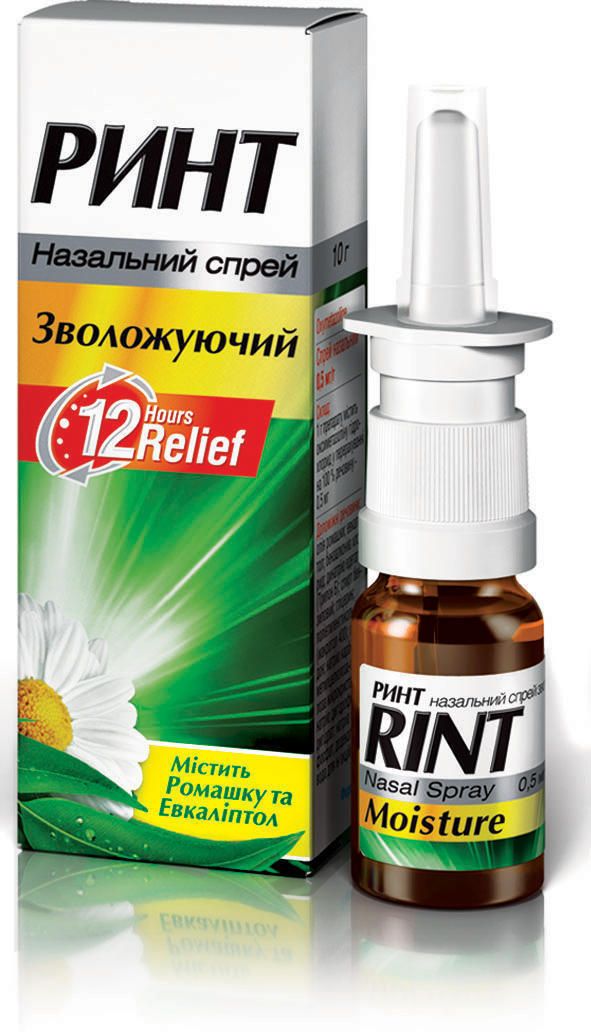 Ринт назальный увлажняющий спрей относится к группе местных сосудосуживающих средств. Оксиметазолин оказывает симпатомиметичное и сосудосуживающее действие, устраняя отек слизистой носа. Сужает сосуды в месте нанесения, уменьшает отек слизистой носа и верхних дыхательных путей, уменьшает выделение из носа. Восстанавливает носовое дыхание. Устранение отека слизистой носа способствует восстановлению аэрации придаточных пазух, полости среднего уха, что предотвращает развитие бактериальных осложнений. Масло ромашки и эвкалиптол оказывают местное противовоспалительное действие, облегчают отхождение слизи. Препарат мягко действует на раздраженную слизистую носовых ходов, увлажняет и защищает ее от чрезмерного высушивания.