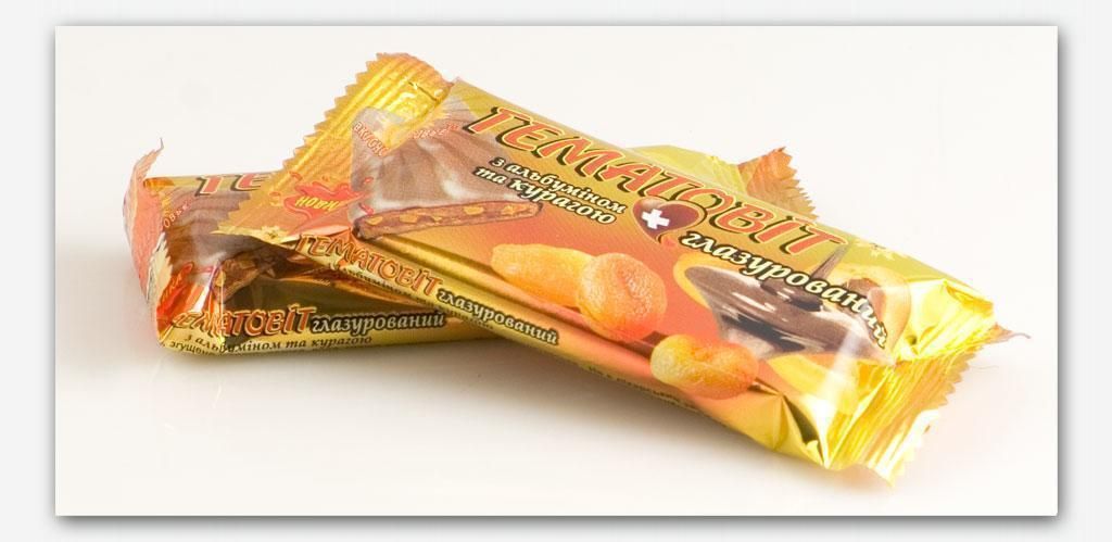 "Гематовіт з курагою" глазурований в молочному шоколаді, сприяє виведенню з організму радіонуклідів, важких металів, здатний попередити і полегшити анемію, серцеві захворювання шлунково-кишкового тракту, а також поліпшити зір, продовжити молодість і еластичність шкіри, зробити сильними і здоровими волосся.