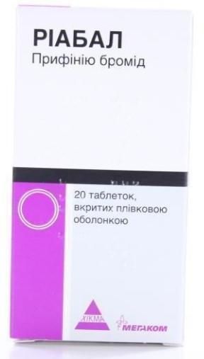 Вибірково блокуючи м-холінорецептори Ріабал робить їх нечутливими до ацетилхоліну що утворюється на закінченнях постгангліонарних парасимпатичних нервів. Наслідком цього є зниження тонусу гладкої мускулатури стравоходу кишечнику жовчного міхура жовчних протоків сечовивідних шляхів та матки а також зниження секреції соляної кислоти пепсину зменшення зовнішньосекреторної активності підшлункової залози. При тривалому застосуванні Ріабал не впливає негативно на функцію печінки нирок кровотворної тканини.
